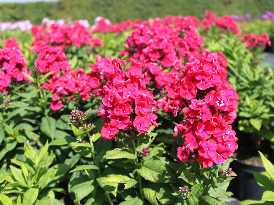 Рассада флокса метельчатого Клубничный Дайкири (Strawberry Daiquiri) очень невысоко вырастает – примерно до 40 см, что позволяет использовать растение на передних планах клумбы, вдоль садовых дорожек и т. п. Особенно выделяются на фоне других флоксов цветы, имеющие насыщенный темно-красный цвет. В сочетании с немаленьким размером бутонов (2,5-3 см) флокс Strawberry Daiquiri представляет собой очень яркий элемент в композиции сада, который поможет поменять расцветку цветника с весенне-летней на летне-осеннюю. Если на раннюю весну подобрать растения более светлой гаммы, а цветение темных цветов рассчитать на лето-осень, с помощью этого алого флокса можно добиться преображения, которое удивит любого гостя.