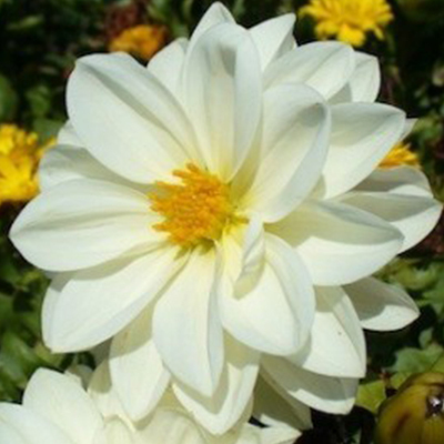Эта георгина предпочитает солнечные места для посадки и подходит для любых типов почв. Она цветет в течение нескольких месяцев - с марта по июль, радуя вас своими нежными белыми цветами. Для ухода за растением рекомендуется регулярный полив и удобрения в период активного роста.