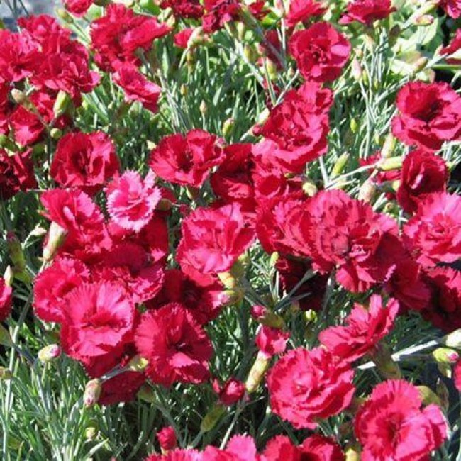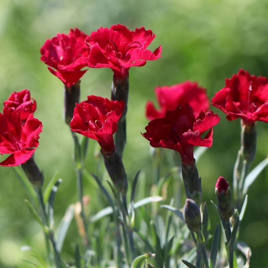 Саженцы гвоздики серовато-голубой Рубин (Rubin) пользуются популярностью у опытных и начинающих садоводов благодаря привлекательности и неприхотливости в уходе. Этот подушковидный многолетник состоит из тонких стебельков и удлиненных зеленовато-сизых листьев. В начале лета на кустах распускаются эффектные ярко-красные цветы. Этот сорт широко применяется в ландшафтном дизайне – гвоздику высаживают на подпорных стенах, рядом со ступеньками, вдоль дорожек, заполняют цветами пустоты сада. Растение предпочитает суглинистую плодородную почву и не выносит застоя воды.