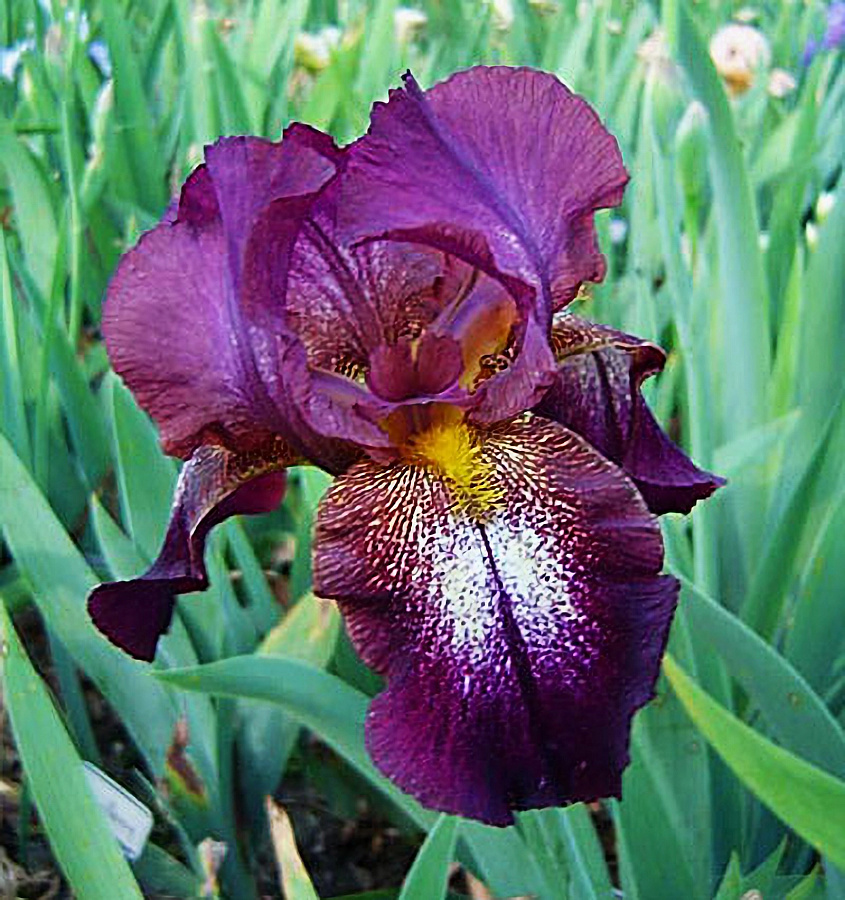 Окраска цветка : теёмно-бордовый с жёлтым пятном на бородке