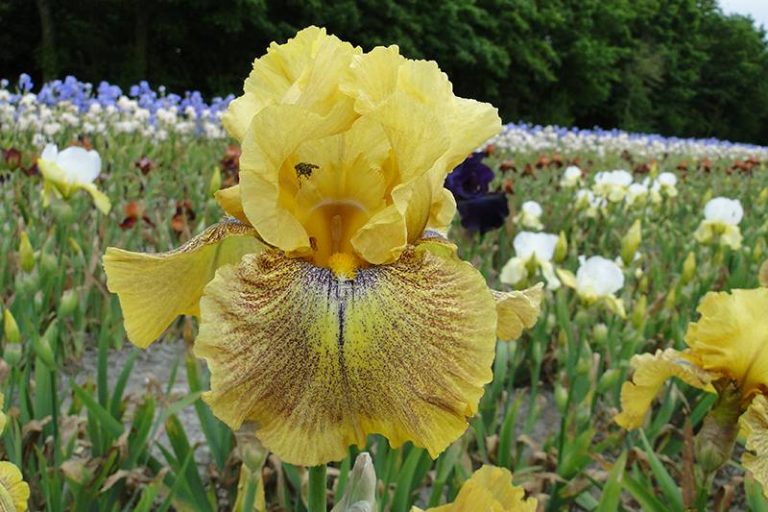 Рассада Ириса Десерт Эхо (Desert Echo) – яркое, красивое, эффектное дополнение цветника. Крупные цветки с интенсивно-жёлтыми лепестками, украшены вкраплением каштанового цвета, заметно выделяются на общем фоне, так как располагаются на крепких, высоких стеблях. Для нормального роста и развития растению необходимы такие условия:
