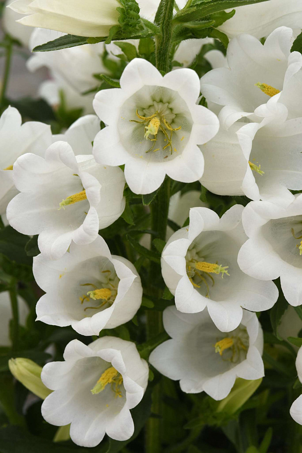 Колокольчик средний Campana White - это изысканное растение, которое поразит вас своей нежной красотой. Его стебель прочный и изящный, достигает высоты 75-85 см, создавая великолепный акцент в вашем саду. Листья колокольчика имеют форму ланцета, придают растению особый шарм и изысканность.