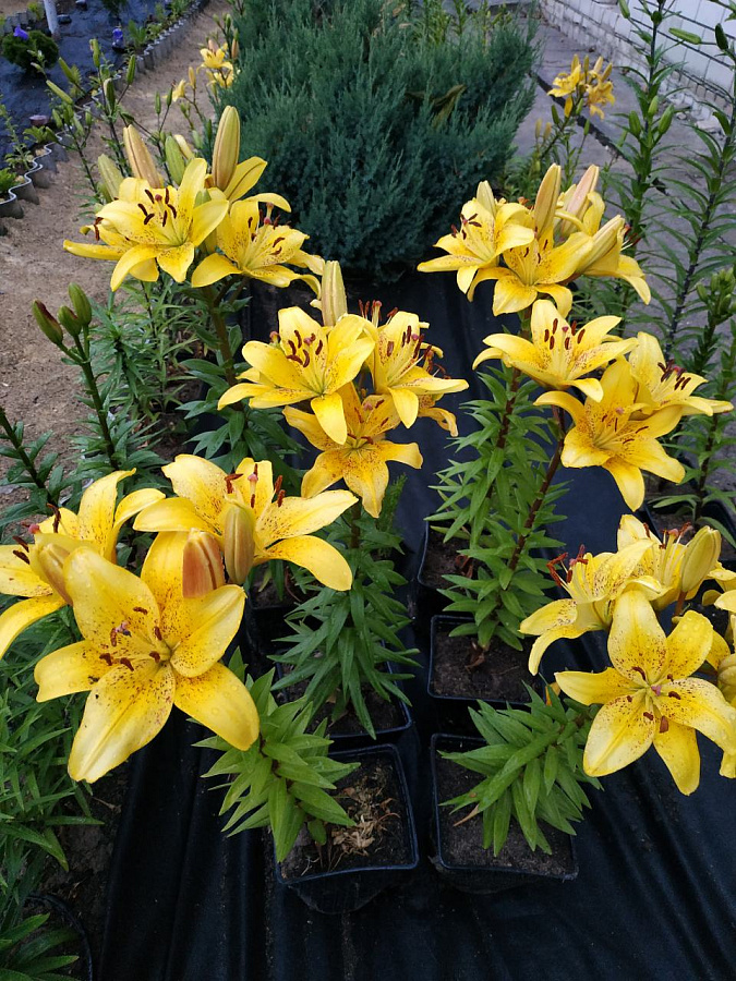 Лилия азиатская "Бело Горизонт" - это великолепное растение с яркими желтыми цветками, украшенными темно-коричневыми крапинками. Ее стебель достигает высоты до 70 см, а размер цветка составляет 15-20 см. Листья лилии имеют зеленую окраску и интересную форму.