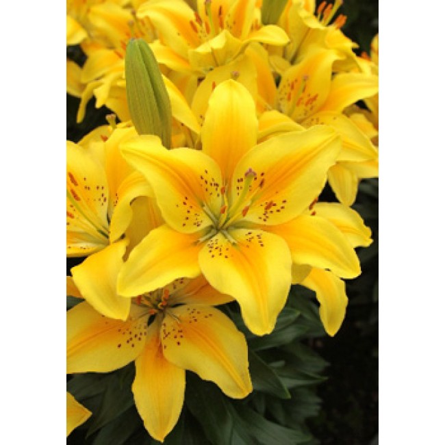 Лилия азиатская горшечная Dreaming Joy - это настоящее воплощение радости и красоты в вашем саду. Это растение поразит вас своими яркими желто-оранжевыми цветками, украшенными темно-оранжевыми крапинками. Высота этой лилии может достигать до 35 см, а размер цветка составляет 15 см. Листья имеют зеленую окраску и интересную форму, что делает растение еще более привлекательным.