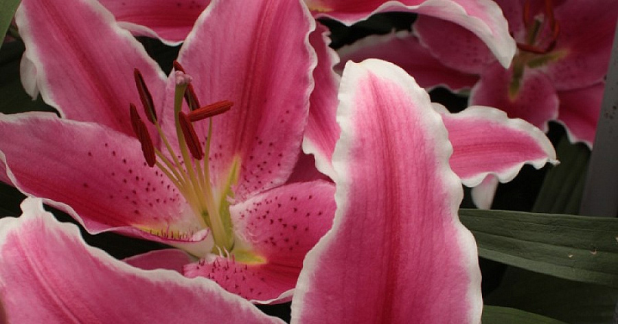 Окраска цветка : розовая с белой каймой