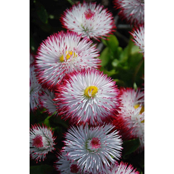 Маргаритка хабанера вайт виз ред типс - это удивительное растение с бело-красными цветками, которые привлекают внимание своей необычной окраской. Сорт habanera white with red tips порадует вас своими крупными цветками диаметром до 6 см и высотой до 20 см. Это растение идеально подходит для альпинария, где оно будет радовать вас своим цветением в течение 2 месяцев.