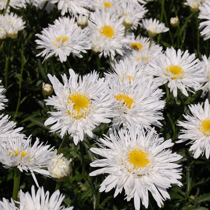 Рассада нивяника Аглая (Aglaia) обеспечит цветение этого эффектного многолетника с первого сезона. Махровые белые соцветия на высоких стеблях (60–70 см высотой) украсят цветник с июня до августа. Вырастить это высокодекоративное растение можно, используя семена, но лучшие результаты достигаются при делении материнского куста.