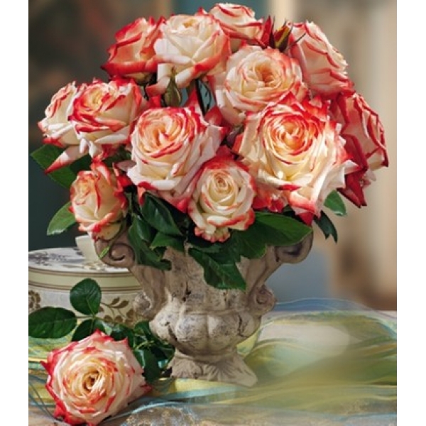 • Окраска цветка : белый с кармино-красными краями